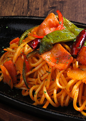 当店のパスタはトルコライス専用に開発したパスタ麺を使用しています。
